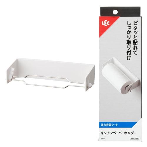 LEC Kitchen Paper Holder (Strong Adhesive Sheet) with a 500g Weight Capacity, Fits Large Rolls Made in Japan