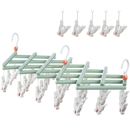 Cozyone Clothes Drying Rack with 29 Clothespins, 360-Degree Rotating Hooks, Multi-Function Storage, Foldable, Heavy-Duty, Wet/Dry Use, Green (Includes