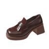 Herbst Neuer Stil Damen High Heels Freizeit Lederschuhe Britischer Stil Plateauschuhe Klobige Absätze Braune Slipper