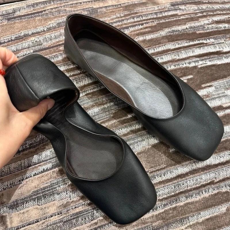 Damen Leder Ballerinas Weichsohlige Pendler Einzel Schuhe 2025 Sommer Eckige Zehenpartie Flache Mary Jane Schuhe