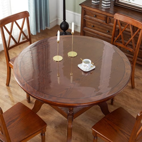 Bloomlover Runde Tischdecke, Transparent, 120cm Durchmesser, Geruchlos, Abwischbare PVC-Tischmatte, Rundes Vinyl, 2mm Dicke, Fleckenabweisend, Wasserabweisend,