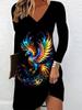 3D-Blumendruck Langarmkleid Exklusives Trendstück für Frauen im Herbst & Winter