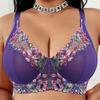 Sexy Lila Bestickter Damen Spitzen-BH mit Seitlich stützenden U-förmigen Schulterträgern für Übergröße Unterwäsche