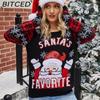 BITCED Damen Weihnachts-Pullover mit Weihnachtsmann-Stickerei O-Ausschnitt Strickpullover