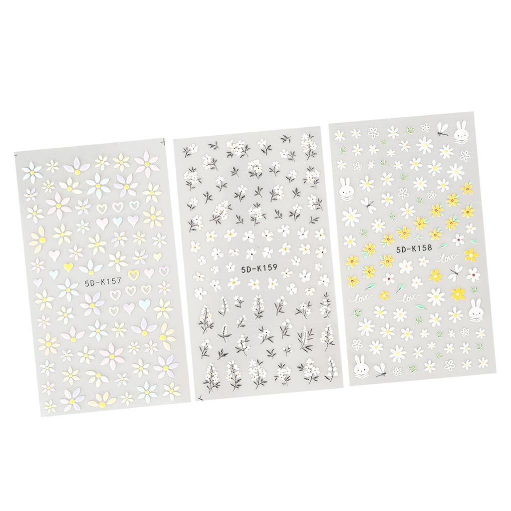 3 Stück Nail Art Sticker Selbstklebend Frühlingsblume Langlebiger Dekorativer Nagelsticker für DIY