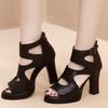 Sandalen mit hohen Absätzen hohler Fischmaul Rom 2025 neue Sandalen Sommer wasserdicht Damen vielseitig mit Damen-Sandalen mit dickem Absatz