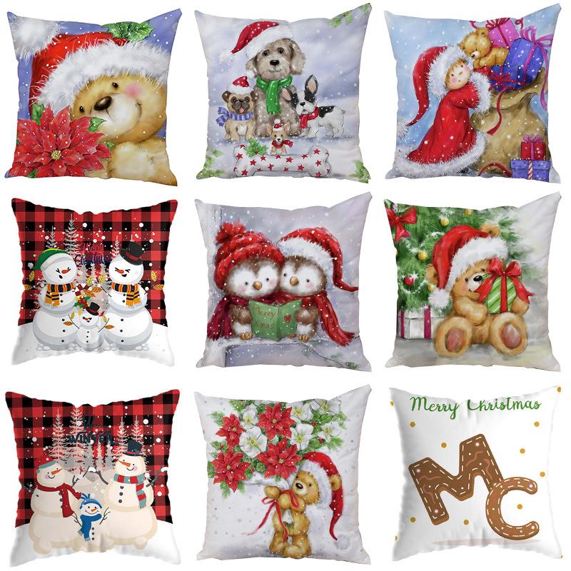 Kissenbezug Weihnachtsmann Kissenbezug Dekoration Niedlicher Cartoon Schneemann Kissenbezug Zuhause Sofa Lendenwirbelstütze Stickerei