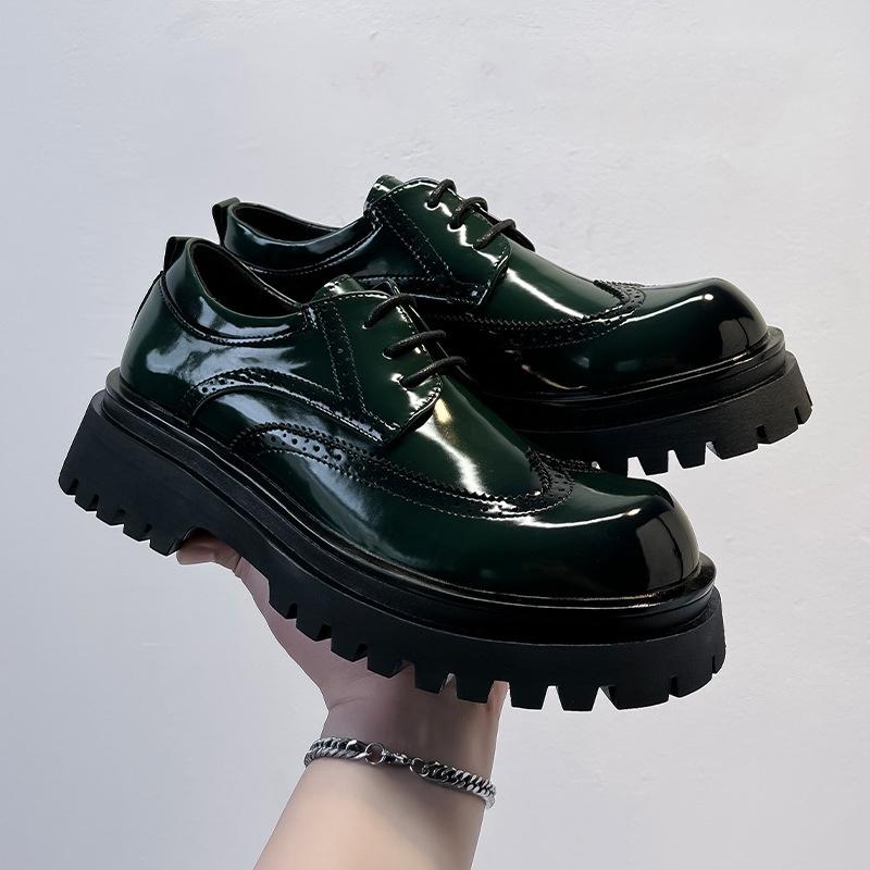 men luxury fashion party nightclub dress original leather shoes lace-up platform derby shoe black green carved brogue footwear