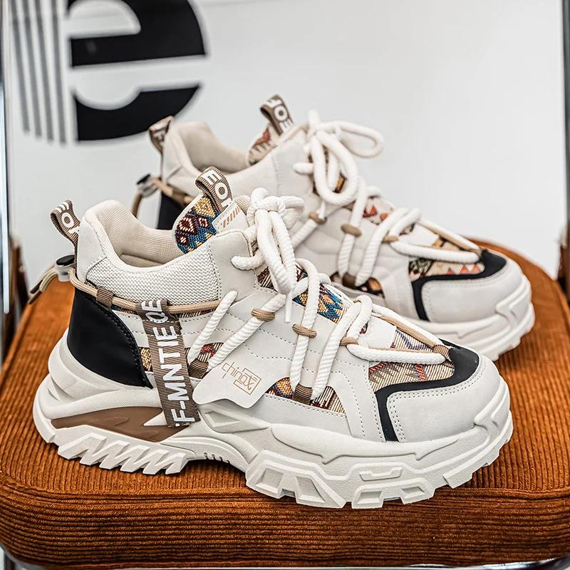 New Luxury Men's Patchwork Casual Sneakers Comfortable Platform Shoes Designed Height Increasing Sneakers Men Casual Sports Shoe