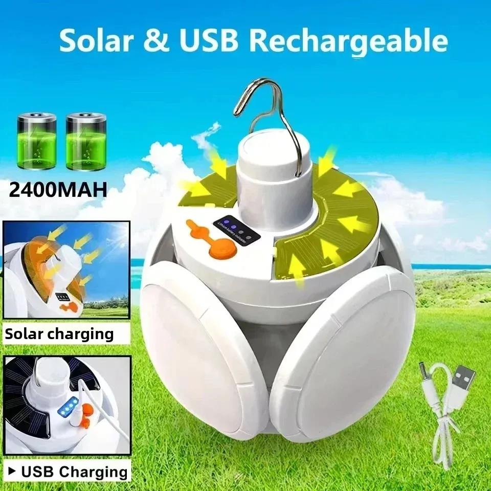Portable Solar Camping Lamp Waterproof Outdoor Tent Light with Hanging Hook, Folding LED Light for Emergency Hiking Fishing BBQ