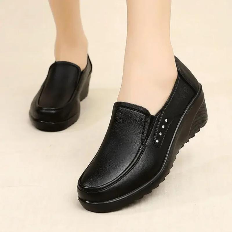 Damenschuhe Leichte Weiche Lederschuhe Bequeme Slipper Loafer Keilabsatz Plateau Schuh Damen Lässige Einzelne Schuhe Damen Loafer