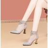 2025 New Mesh Boots Pointed Toe Ankle Boots Woman Patent Leather Short Sandals Gold Color Female Ladies Zip Elegant Heeled Shoes