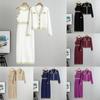 Herbst Winter Damen Lässig Gestrickter Pullover Hose Zweiteiler Set Großer Goldener Knopf Einreihige Jacke Oberteile und Elastischer Bund Hose Trainingsanzug