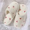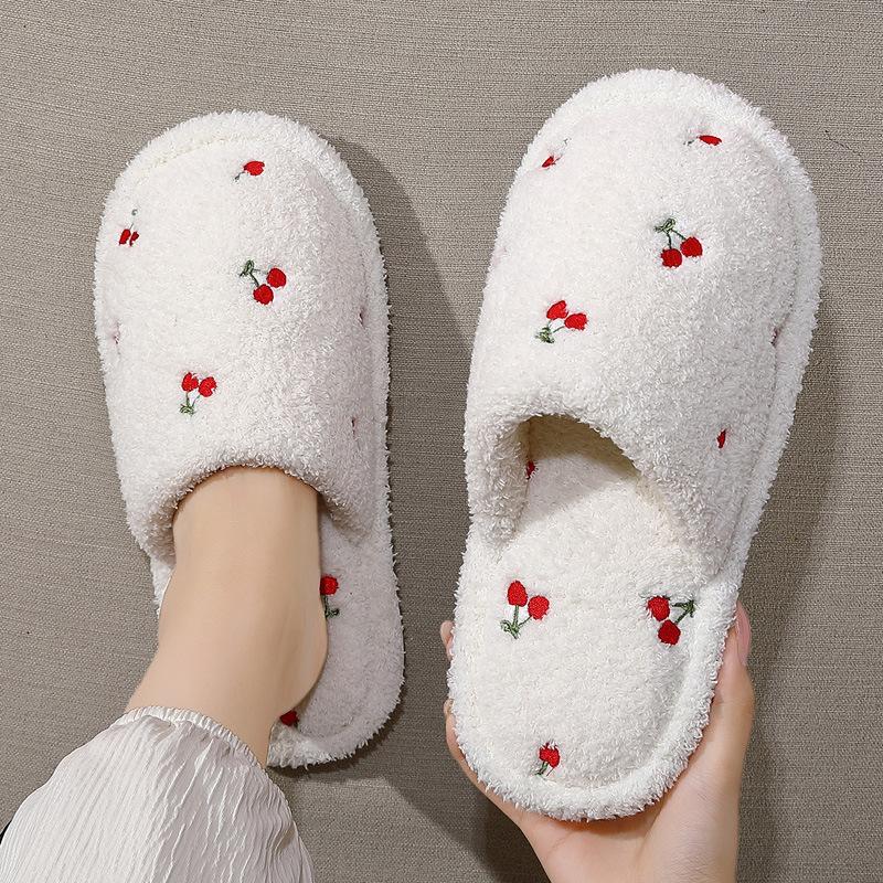 Baumwollhausschuhe für Zuhause Winter niedlich bestickte Kirsche Indoor Haushalt Plüsch warm Schlafzimmer flauschige Hausschuhe