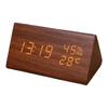 LED Digital Alarm Clock Multipurpose Wooden Clock with Voice Control Humidity Temperature Week Time Display Brown Wood