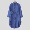 INCERUN Men Lapel Neck Long Sleeve Striped Irregular Splits Casual Long Shirts Tops