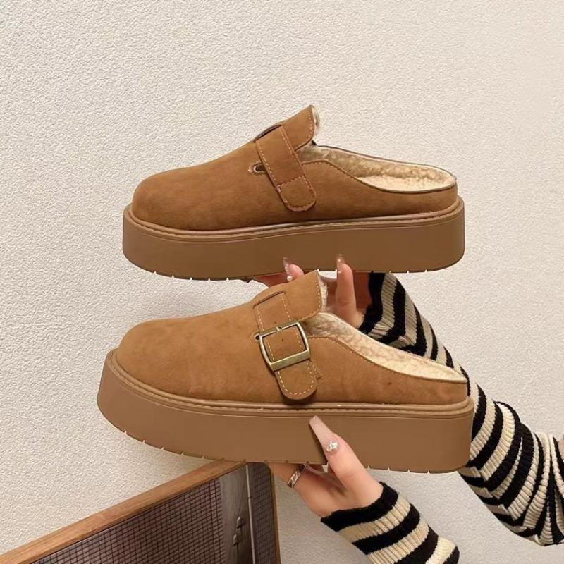 Erhöhen Sie die Höhe eines Pedals, Lazy-Bag-Kopf, halbgeschleppte Baumwollpantoffeln, Winter neue dickbödige Samt-Schlepp-Damen-Oberbekleidung
