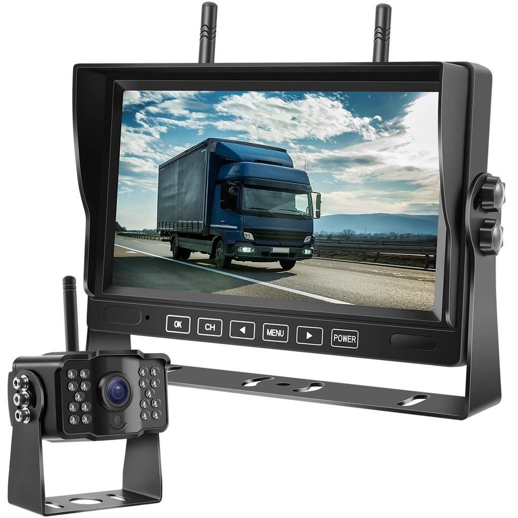 Hizenyo Rückfahrkamera Monitor Set mit Aufnahme Kabellose Rückfahrkamera LKW IPS Automatische Schleife Digital Teilbar Umschaltbar zwischen Normal und Gespiegelt Führungslinien