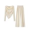 Koreanischer Chic Teefarbener Damen Irregular Top und Straight-Leg Hose Set