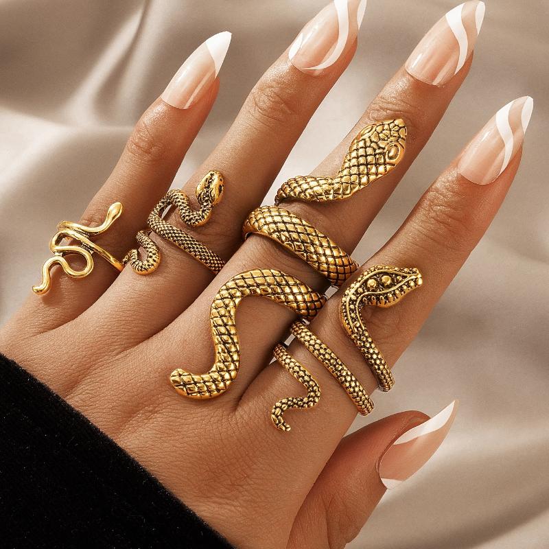 Imoli 4pcs/Set Fashionable Punk Style Snake Carved Alloy Ring Set, Suitable for Party, Gathering, Gift