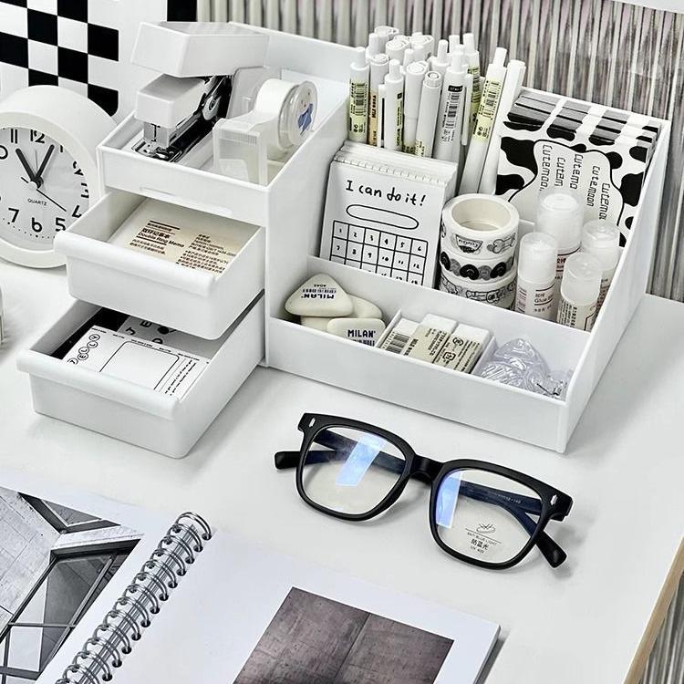 Student Minimalistischer Schreibtisch-Organizer: Kosmetik- und Schreibwaren-Aufbewahrungsbox mit hoher Kapazität und kreativem Stifthalter