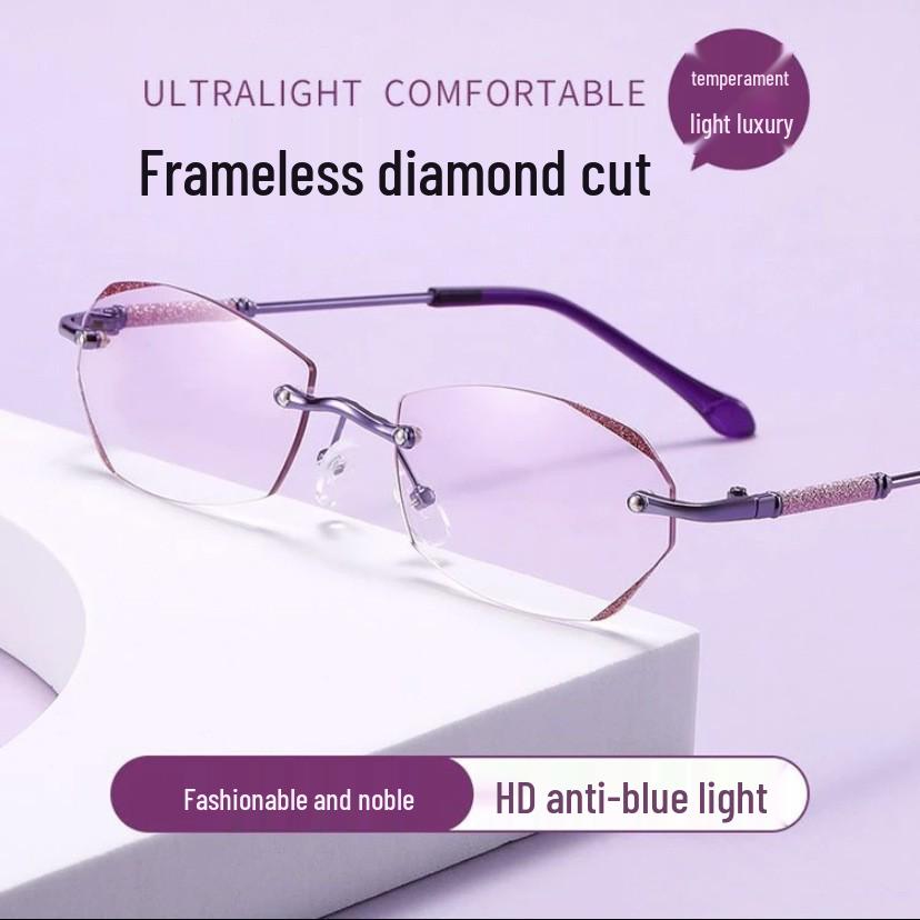 Damen Ultraleichte Brille mit Diamantenbesatz, randlos, Blaulichtfilter - Modisch für Mittelalte und Ältere