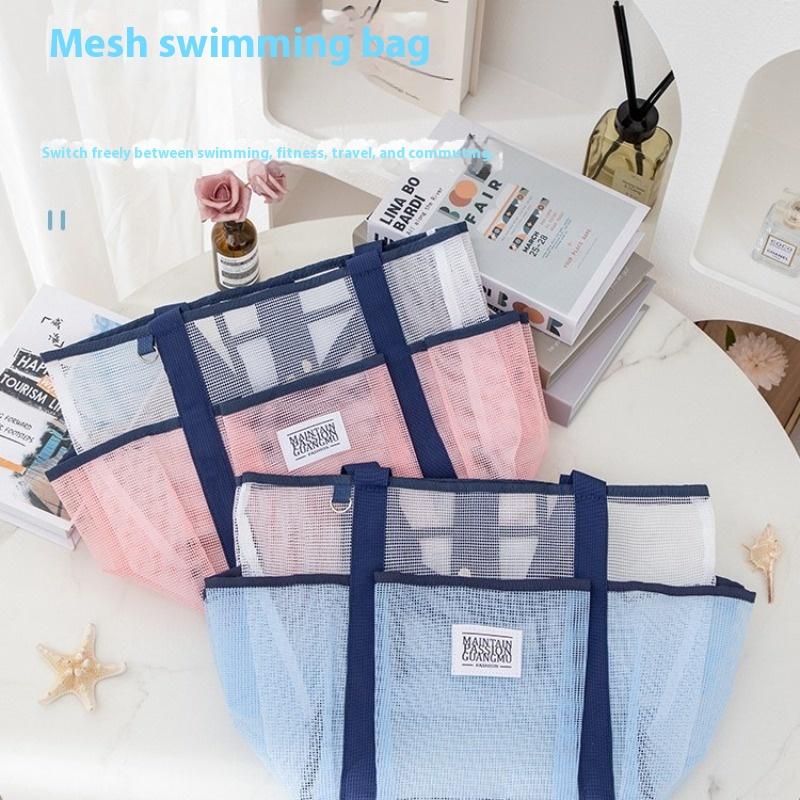 Neue Make-up-Tasche, Großraum-Bad- und Toilettenartikel, Strandtasche, Mehrfachtaschen-Netzstoff, Essentielle Reise-Aufbewahrungstasche