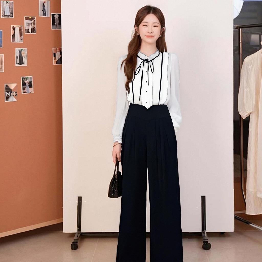 Trendiger 2025 Zweiteiler Damen Herbstanzug: Stilvolles Hemd & Weitbeinige Hose