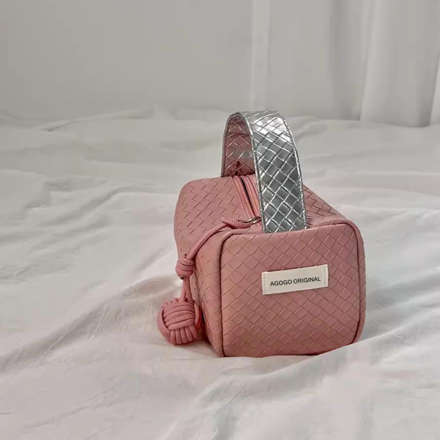 Silberpuder Gewebte Textur Make-up Tasche - Tragbarer Organizer