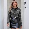 Damen karierter Strick-Cardigan Damen Jacke im kleinen Duftstil Helles Ziegelrot Schleife Perlenknopf Mode-Pullover