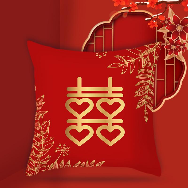 Rotgoldenes Happy Wort Kissen Hochzeitsdekor Kissenbezug Neuer Chinesischer Stil Hochzeit Zuhause Festlich Feiertag Bettseite Sofa Kissen