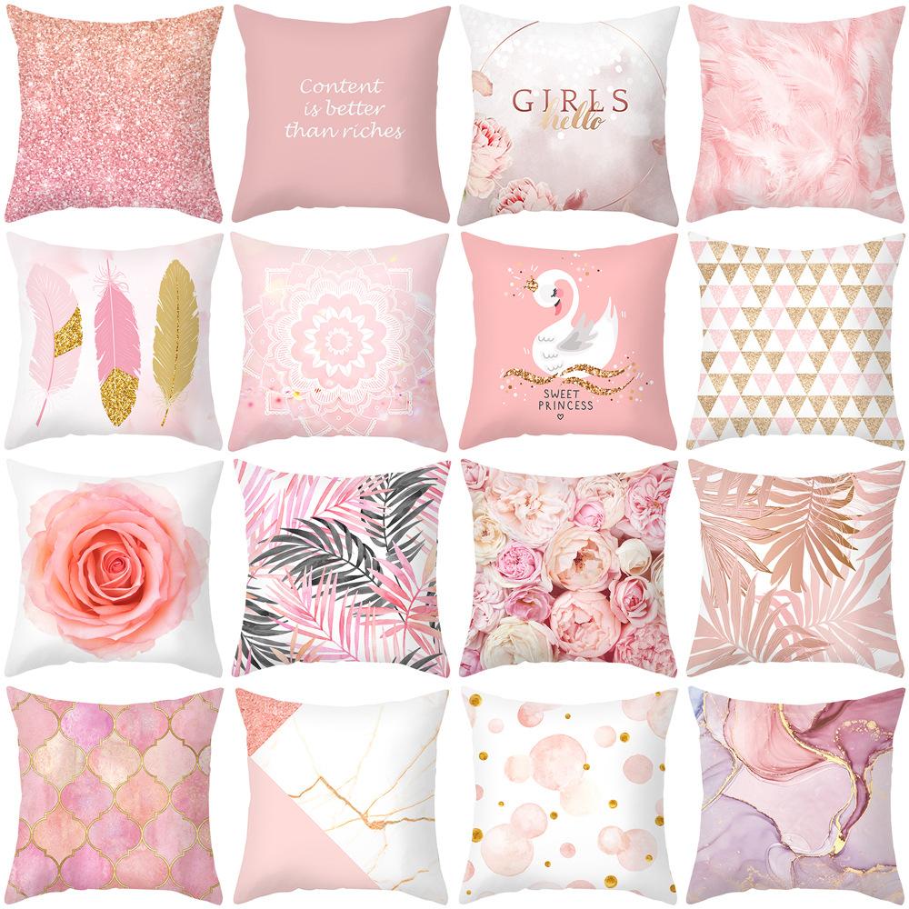 Pfirsichhaut Bedruckter Kissenbezug Rosa Ins Wind Blumen und Blätter Wohnzimmer Zuhause Kissenbezug Kissenbezug
