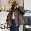 Modische koreanische kurze Lederjacke für Herren PU-Freizeitjacke für lockeren braunen Frühlings- und Herbststil
