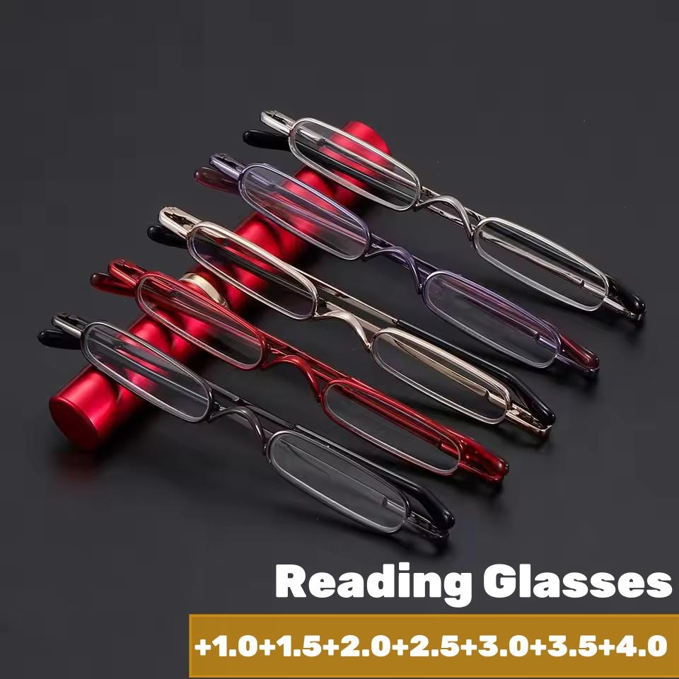 Herren Damen Schlanke Stift Lesebrille mit Tragbarem Clip-Etui Schlanke Weitsichtigkeitsbrille Lesebrille mit Stiftclip Röhrenetui +1.0+2.0