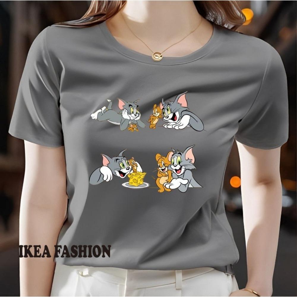 New casual women's printed short sleeved round neck slightly elastic T-shirt for spring and summer, new ins super popular