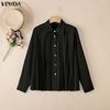 VONDA Damen Lässig Umlegekragen Elegant Gerüscht Plissee Langarm Bluse