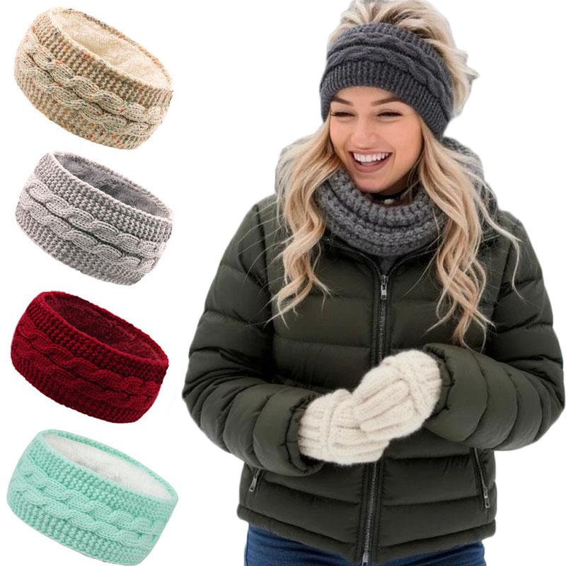 Womens Thermal Ribbed Thick Fleece Lined Winter Headband Wrap Ear Warmer