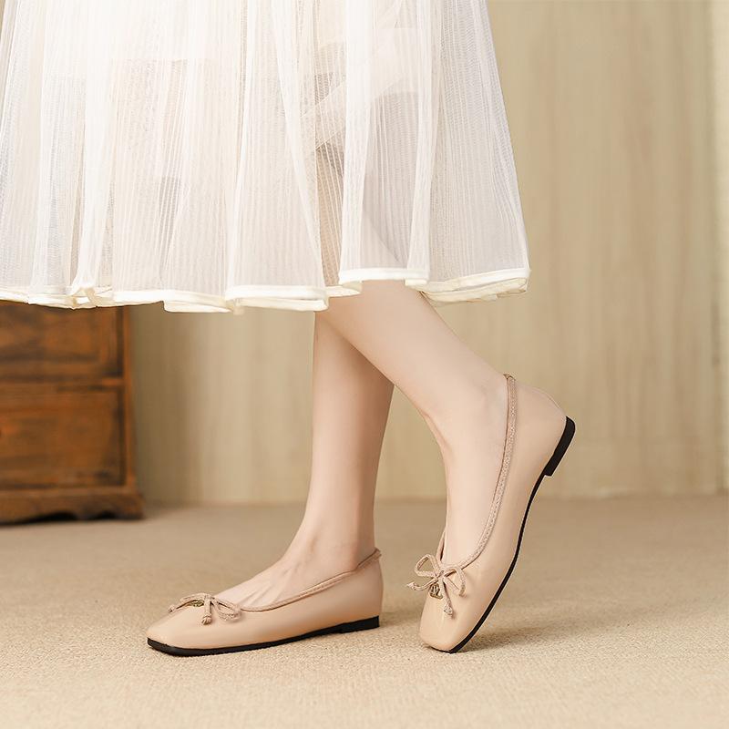 W712-15 Einzelschuhe Damen Frühling 2025 neu eckige Zehenpartie flacher Ausschnitt Mützenschuhe sanfter Wind Schleife Ballerinas Damen