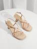 Französische Riemchensandalen mit eckiger Zehenpartie für Damen, Sommer-Temperament, hohe Absätze, vielseitige schlanke Absätze, Römerschuhe