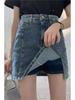 Damen Übergröße High Waist Denim Minirock mit Schlitz - Retro A-Linie, Figurformender Sommer-Stil
