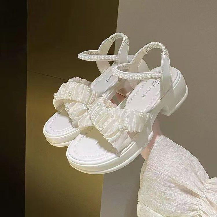 Sandalen Damen Perlen Plateau Feenstil Sandalen Damenrock 2025 Sommer neue Mode vielseitige Römerschuhe Trend