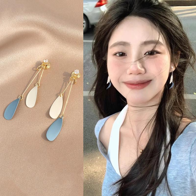Damen Einzigartige Blaue Schlankmachende Blatt-Ohrringe - Clip-On-Stil, Kein Piercing Erforderlich