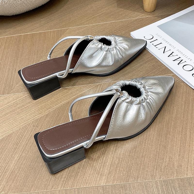 Mode Temperament Einzelne Schuhe Mode Spitzzehen Hohle Plissierte Tragen Leichte Luxus Flache Weichbesohlte Sandalen