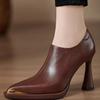 Neuer Stil Mode Damen Einzelschuhe mit Absätzen Metall Spitze Zehenbereich Dünne Absätze Tiefer Ausschnitt Seitlicher Reißverschluss Schuhe Retro High Heels