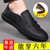 Lässige Lederschuhe Herren Frühling weichsohlige weichnarbige Leder Fahrlässige Schnürlose Leder-Fahrschuhe