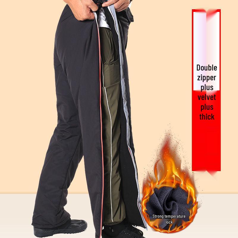 Herren Wasserdichte Winter Baumwollhose mit Doppelreißverschluss - Schnellverschluss, Lockere Passform, Plus Samt, Warm für Outdoor und Angeln.
