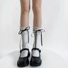 Reine Baumwolle Lolita Breite Spitze Schleife Socken - Frühling Wadenlang Süßer Wunsch Stil