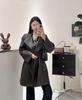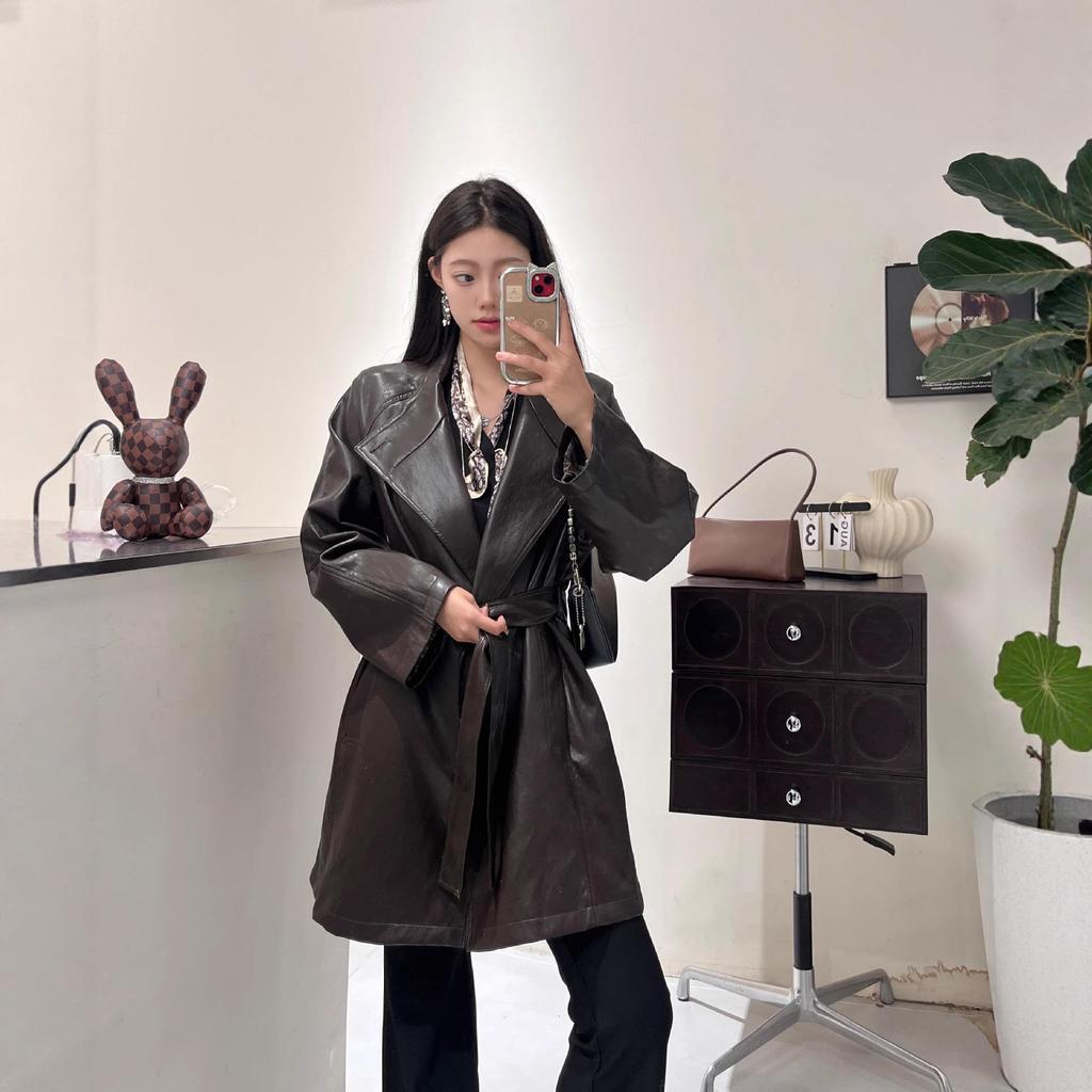 Minimalistischer karierter Ledertrenchcoat für Damen