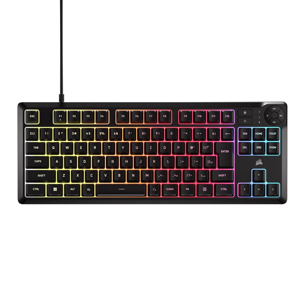 Corsair K55 CORE TKL RGB Gaming-Tastatur RGB Tenkeyless Dedizierte Medientasten Leise und reaktionsschnelle Schalter 300ml Schwarz – 8-Zonen – – – –