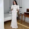 2025 Herbst Damen Einfarbig bedrucktes Langarm-Bodycon-Kleid mit halbochgeschlossenem Hals
